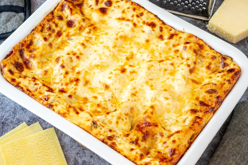 - Cubrir la lasaña con el resto de la bechamel